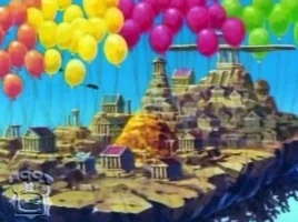 Atlantis was a city that fell into the sea because Merlock the Magician used the powers of Gene the Genie to destroy it, as mentioned in DuckTales the Movie: Treasure of the Lost Lamp. Scrooge McDuck and his group look for an amount of his money lost at sea. They are captured by Fish Folk and brought to Atlantis where they are given a sentence to 400 years in the ruins of Atlantis by Master Malek. Scrooge's group then raises the island from the water using Gyro Gearloose's Super Fizz, which allows it to float in the sky.