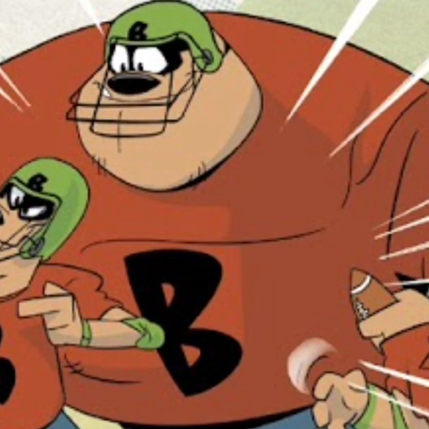Backfield is one of the Beagle Boys and a football player. He is called upon by his brothers the Original Classics and Broadway Beagle to help them beat Scrooge and his family in a football game.