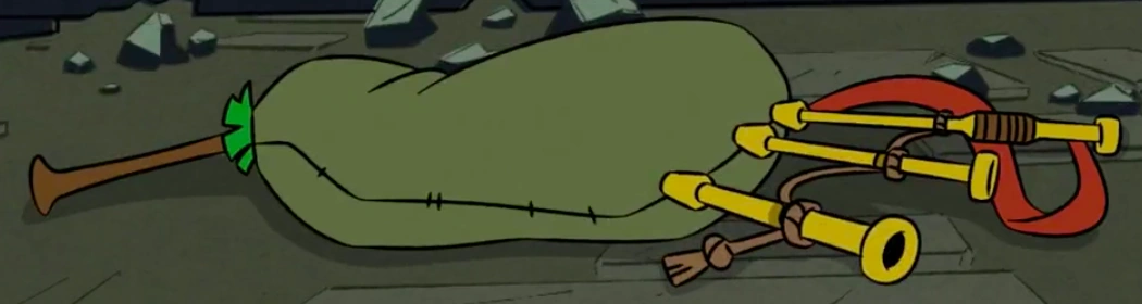 The Blessed Bagpipe of Clan McDuck is an artifact that used to be owned by Danny McDuck, and was later hidden in Danny’s statue. Pepper accidentally used the bagpipe to bring the statutes of Sir Murdoch McDuck, Agnes McDuck, Danny McDuck and “Dirty” Dingus McDuck to life.