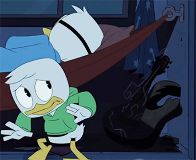 Suddenly from a nearby vase, Louie approaches the three with a plan that can get them famous, as long as they will listen to his orders no matter the cost. Although Donald is hesitant on the offer, José and Panchito immediately agree and thus roping Donald in as well. Soon after in the triplet's room, Louie explains to the three that the fastest way to fame is by getting on the IT-list owned by Emma Glamour. Dewey then bumps in on the conversation by stating that whoever gets on the list will become instantly known, while referencing a few of his inspirations from the list including his favorite band and current hairstyle.