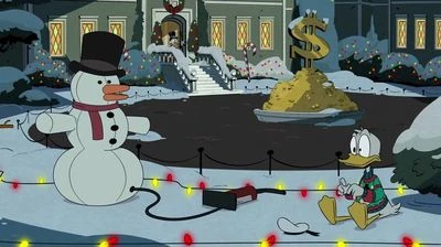 As the three tried to fend off the beast, Donald was thrown to the ground, resulting in his guitar smashed, which lead him to ragefully attack the Wendigo. He was able to push him towards the new netting trap set up, as both Della and Bluey successfully tied the monster up and later brought it over to the manor to let their uncle Scrooge deal with it. Once the monster was placed by the entrance, Donald apologized to Della once more for having left her without anyone to hang out with, and promised to never spend another Christmas apart from one another.