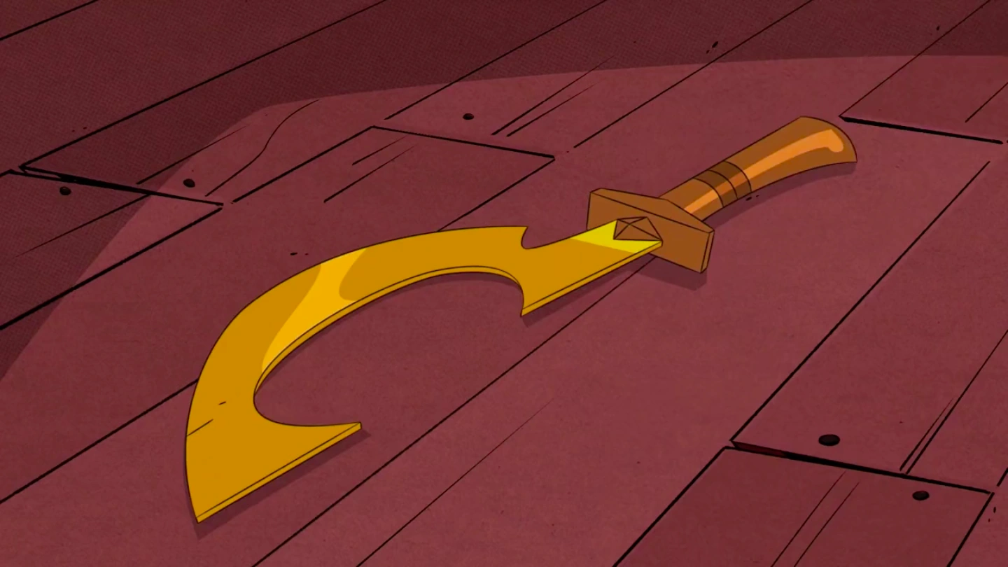 In The Living Mummies of Toth-Ra!, Louie and Webby came across the khopesh while exploring Toth-Ra's treasure chamber. The Living Mummies gave it to Launchpad as a reward for freeing them and teaching them how to make burritos, but Louie later conned him into giving it to him.