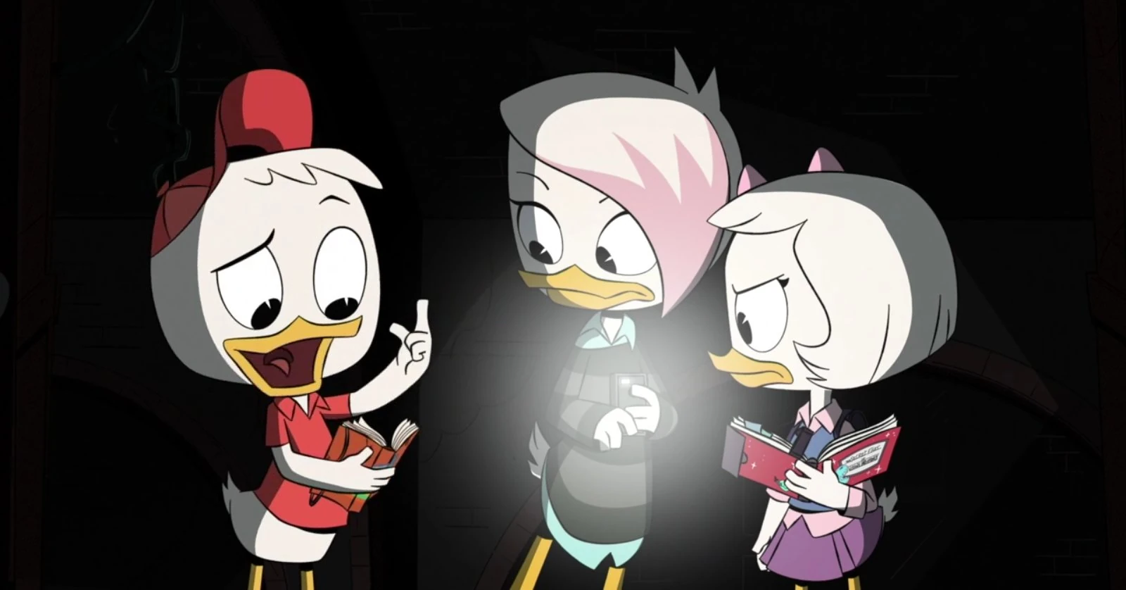 At the beginning of this episode, Webby goes to the library, together with Lena, who is an invisible shadow. At the library, Webby meets a new friend, Violet, and they decide to have a sleepover, due to their similar interests.