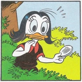 Not appearing in the actual 1987 DuckTales cartoon, she debuted in the DuckTales comic "Dime After Dime", published in Disney Adventures in 1991. She is notable among the characters created for the original DuckTales in that, despite only appearing in a single comic based on the show (and not in any episodes of the show itself), she has since become a regularly recurring character in Magica-centric comic stories produced in Italy.