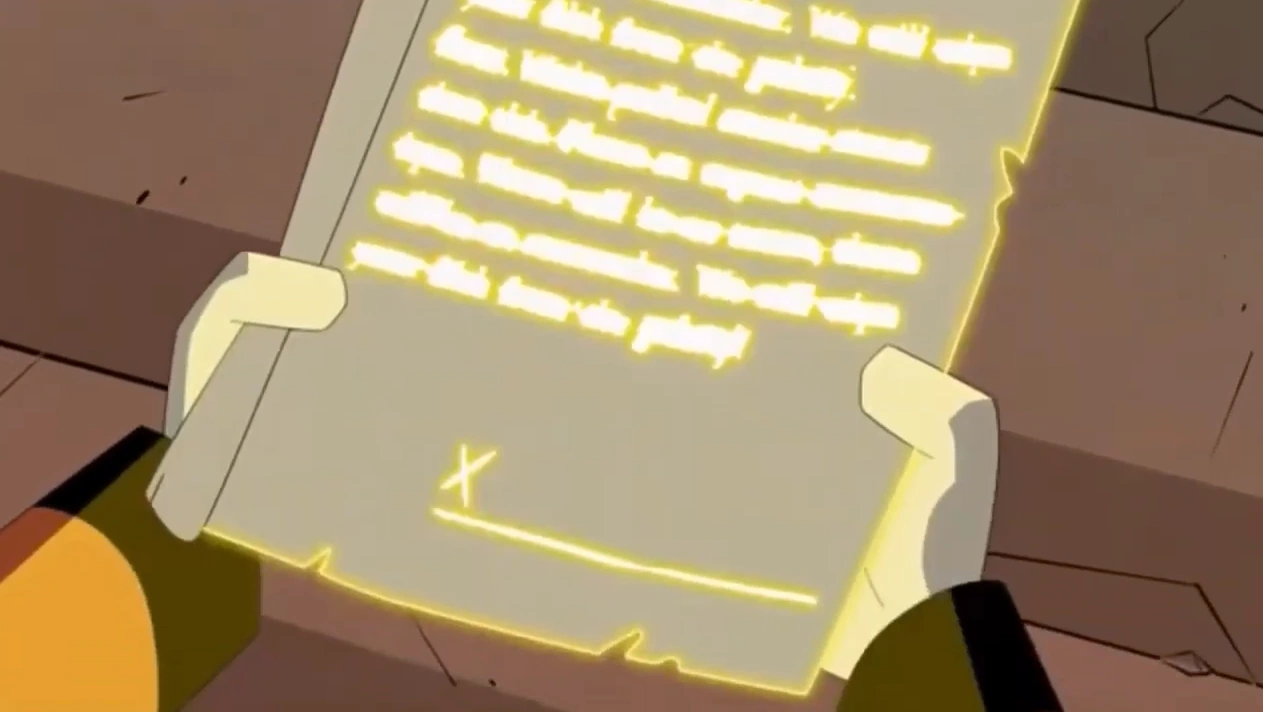 The Papyrus of Binding is a mystical artifact. When you write on the Papyrus, anything you ask it for will become a reality, as Bradford used the Papyrus to erase Scrooge's, young Della's, and young Donald's memories of him when they caught him and later Scrooge used the papyrus powers so it can be hidden until the true heir of McDuck can find it. It is one of the missing mysteries of Isabella Finch and was first seen in "The First Adventure!". In the finale, Bradford used the papyrus to create a magical contract that incapacitates Scrooge and keeps him from saving his family (the contract keeps him from ever going on adventures again). The only way to cancel the binding spell is to discover a loophole. When a loophole is discovered, the bounds break. It is the only known artifact from Finch's journal to be destroyed.