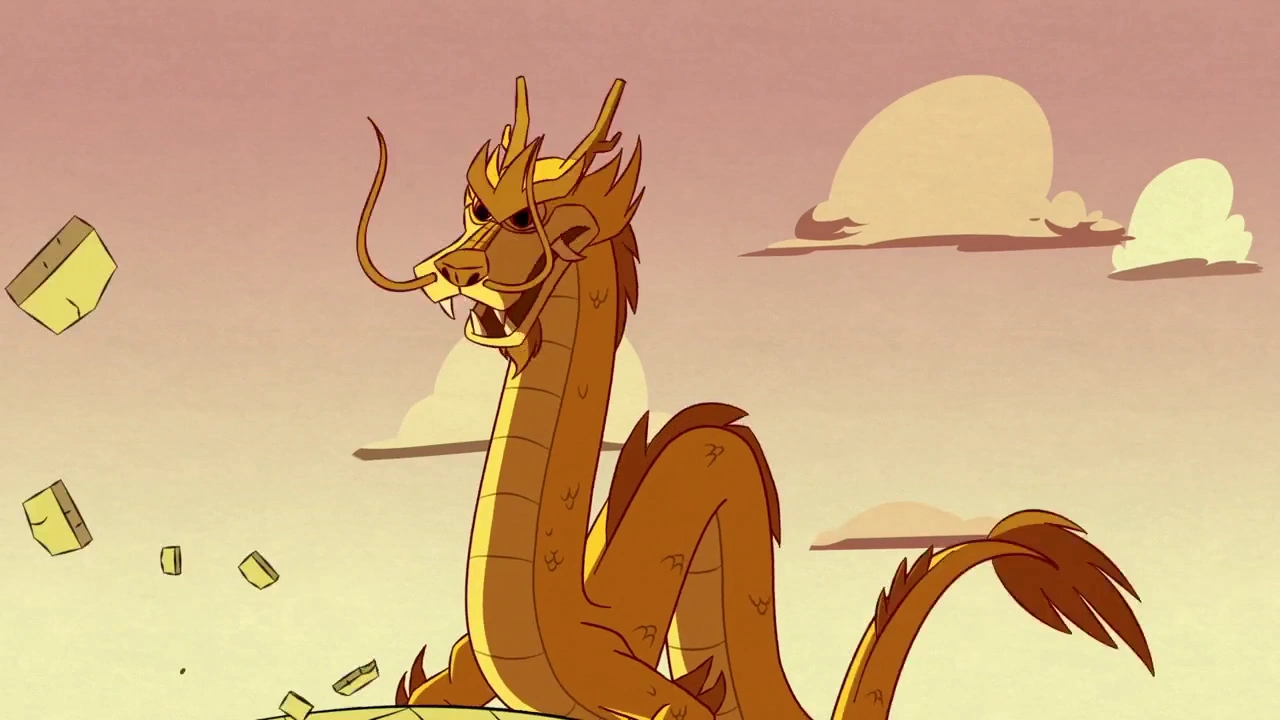 When the gong that was imprisoning him is struck three times by mistake, Pixiu is awoken and freed from his stony prison. He makes a hasty exit from the McDuck Manor garage. The duck grabs onto his tail and struggles to keep a grip as Pixiu aims for his Money Bin. Eventually, Pixiu is able to lose Scrooge, and the dragon uses his jaws to break open the bin. Before he can get to the gold, Scrooge returns and uses the Medusa Gauntlet to return Pixiu to stone. The stone Pixiu falls down to the bin's gold, breaking on impact.