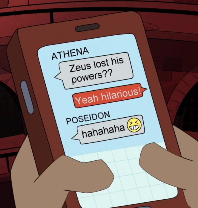 Poseidon is a Greek god and brother of Zeus that was mentioned in the DuckTales (2017) episode "New Gods on the Block!" where his name appeared among the gods messaging Hades that Zeus had lost his powers.