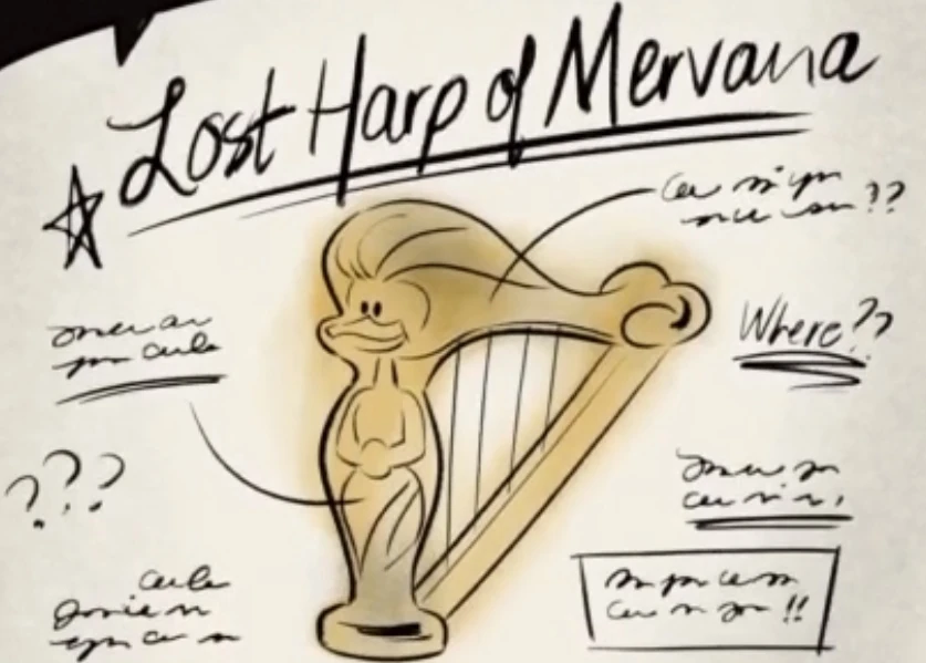 - The Lost Harp of Mervana shares a couple of similarities with the Magic Harp from the 1987 DuckTales series episode "Raiders of the Lost Harp".
